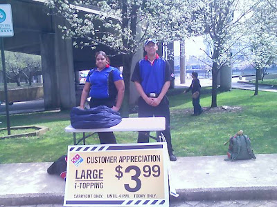 Saturday was a beautiful day here on Roosevelt Island. The warm temperature and sunshine gave us our first hint of spring. The farmers market was crowded and Dominos Pizza from Jackson Avenue in Long Island City was there showing some customer appreciation. (Do they really deliver until 1 AM, even to Roosevelt Island?)