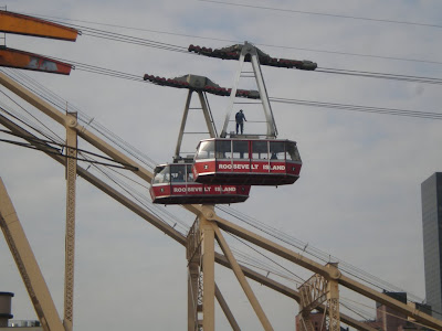 However, despite the picture of person standing on top of moving tram, to my knowledge, there is no truth to the rumor that RIOC is testing the possibility of adding roof top standing room positions for the Roosevelt Island Tram to alleviate overcrowded tram cabins.Fellow blogger Roosevelt Island 360 calculated that since the start of this year, Roosevelt Island experienced weekend subway service outages for 13 out of 20 weekends and asks if this may be some sort of New York City subway record. Anyone know the answer?