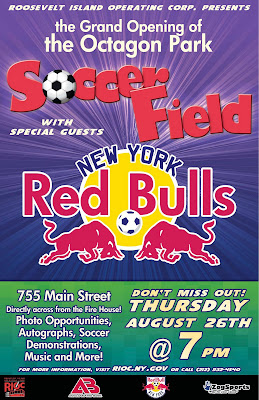 Please join the Roosevelt Island Operating Corporation along with the New York Red Bulls Soccer Team on Thursday, August 26th at 7 PM as we re-open the newly resurfaced Octagon Soccer Field. Dust off your soccer cleats and participate in the fun as guests will have the opportunity to watch professional athletes perform eye-catching soccer tricks and play with some of the best soccer players in the country.