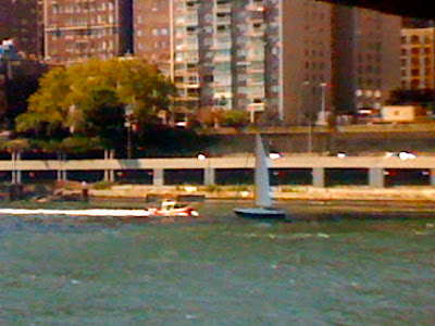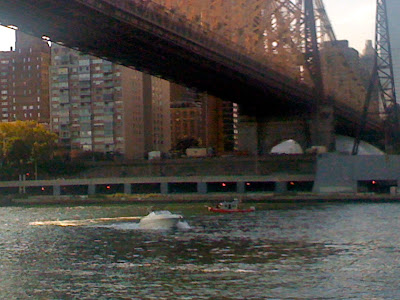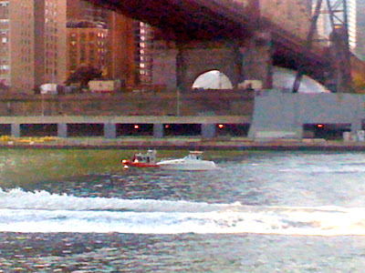 A Coast Guard dinghy was patrolling the East River near Roosevelt Island earlier today