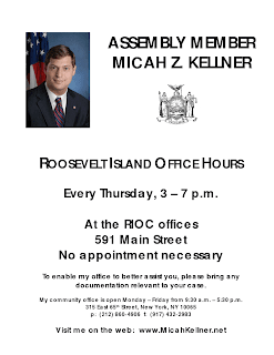 Received the following message from Roosevelt Island’s Assembly Member Micah Kellner.