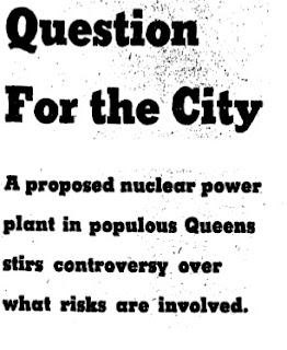1963 New York Times story on the proposed nuclear power plant in New York City.