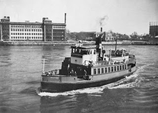 This was the last steamer to travel between Manhattan’s East 78 St. and the Octagon Pier. The service ended when the Welfare Island Bridge opened in the late 1950’s.