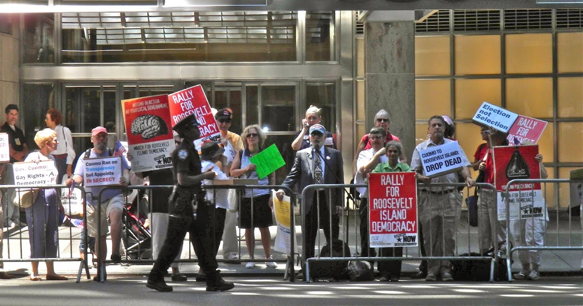 UPDATE 11:20 PM – The Albany Times Union Capital Confidential Blog covered the Roosevelt Island Democracy Protest too: