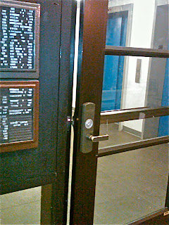 Again last evening, although we’d discussed this problem in our meeting last Thursday, I found the lobby’s doors at 546 Main Street, (the Senior’s building)- both front and rear, were open at approximately 8:45 PM. The front door continues not to close automatically, and the back door lock is broken and will not adequately secure the door. I had placed signs on these doors so that tenants would know to secure the doors behind them, and those signs were removed. No security was assigned to guard the doors. I reported the problem to the Public Safety Dept.