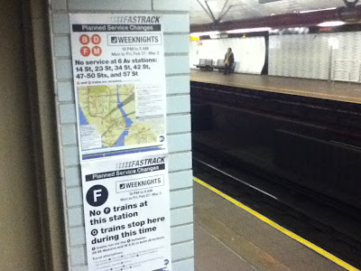 More information on this week’s F Train Fast Track subway disruption from previous post. Remember the Q train will be servicing Roosevelt Island during the Fast Track Hours.
