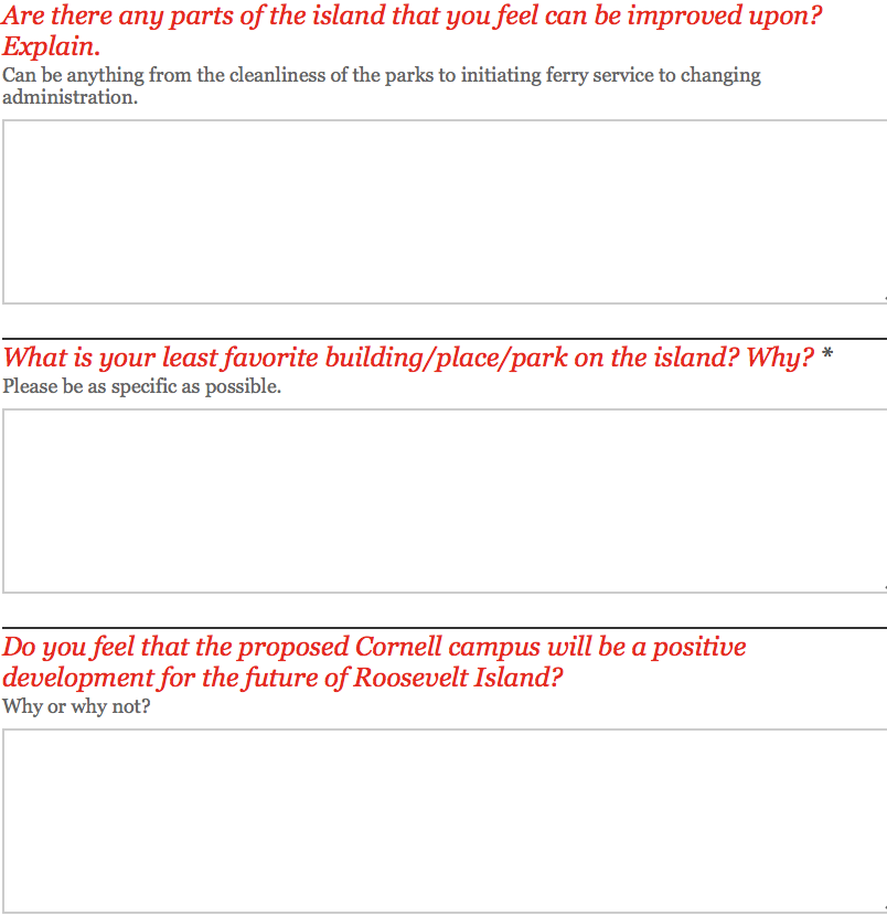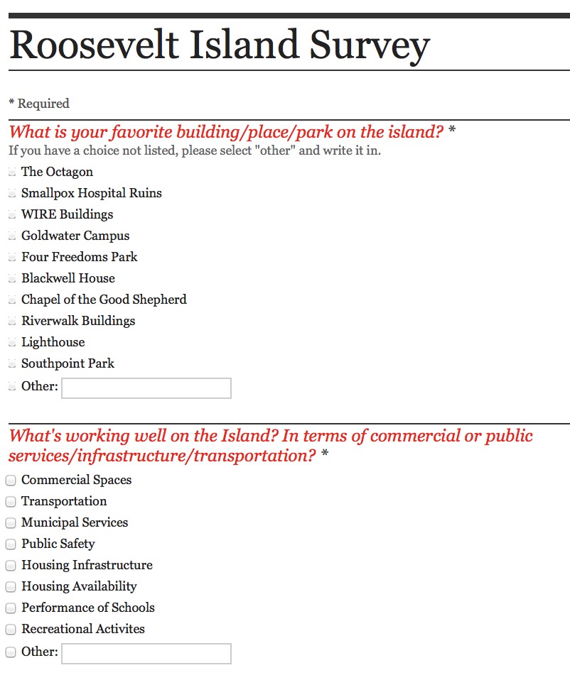 For our group, we have decided to craft a preservation plan for the island, and believe that resident input is of critical importance. The responses will be used to help evaluate significance of the buildings on the island, and what perhaps should be pointed out as historically significant, or what kinds of transportation/infrastructure could be employed to make the lives of RI’s citizens better. Citizen input is really going to influence how we will proceed with a plan, and what sort of things we will include in it.