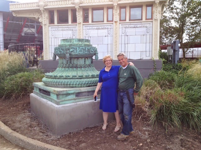 On October 14th the finishing touches were placed on the lamp base. The decorative ornamentations have been replaced the the base. The foundation received a coating of stucco. The missing borough plaques will soon be replaced on the four sides (Manhattan, Brooklyn, Bronx and Queens). There will be a formal ceremony celebrating the placement in November. Arnold Apria of Cornerstone Conservation and his crew are very talented and their work is very impressive.