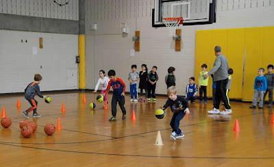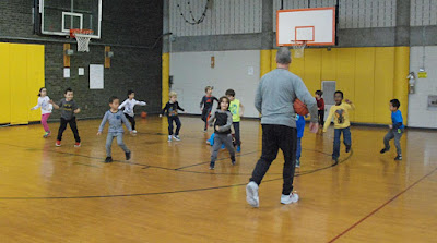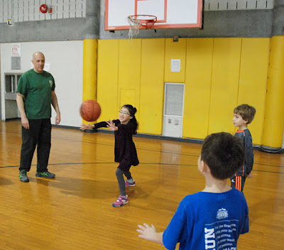 The photos, from the 5 and 6 year-old classes, show Coach Tommy teaching the kids several kinds of passes (with thumbs down follow through),