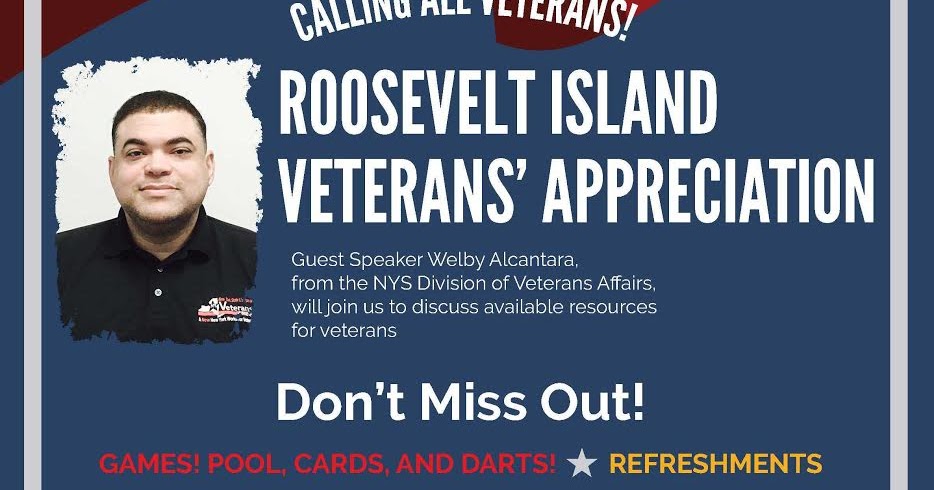 RIOC President Susan Rosenthal reported during December 8 Board meeting that there were at least 300 veterans living on Roosevelt Island.Join Roosevelt Island Operating Corporation and the Carter Burden Senior Center on Tuesday, March 21st from 6 PM – 8 PM at the Senior Center, located on 546 Main Street for Roosevelt Island Veterans’ Appreciation. Stop by for games, refreshments, and to hear a guest speaker from the New York State Division of Veterans Affairs discuss available resources for veterans. We hope to see you there!