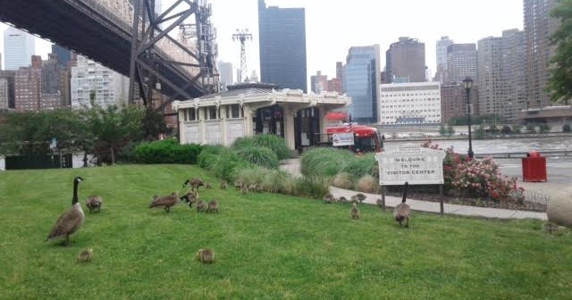 Family Of Geese Take A Southpoint Park Stroll On Roosevelt Island East River Waterfront
