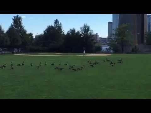 Roosevelt Island Frisbee Players Share Firefighters Field With Flock Of Geese