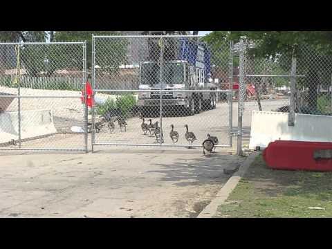 Gaggle Of Geese Stroll Roosevelt Island Promenade Enjoying Amazing Views Of Manhattan