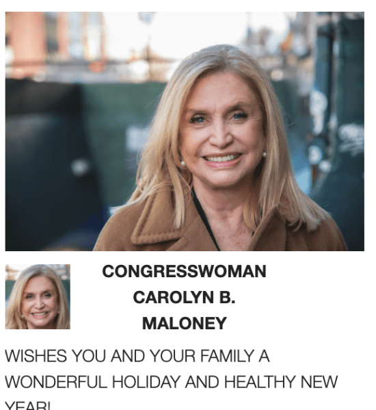 Posted inUncategorized Sponsored Post – Congresswoman Carolyn Maloney Wishes You And Your Family A Wonderful Holiday And A Healthy And Happy New Year by Roosevelt Islander December 13, 2021 11:24 amJuly 11, 2022 9:03 pm